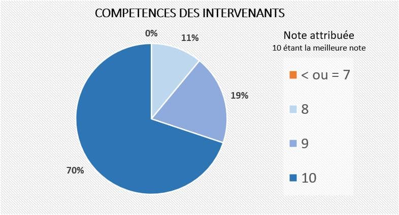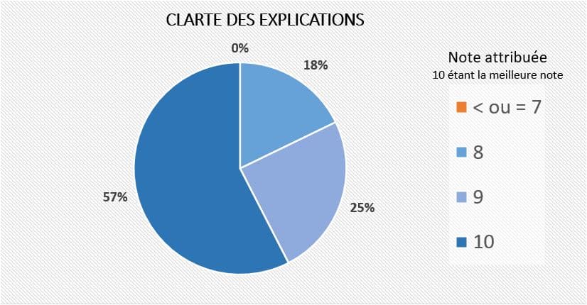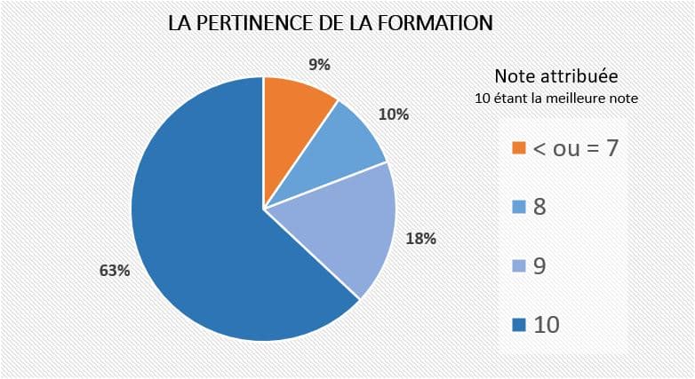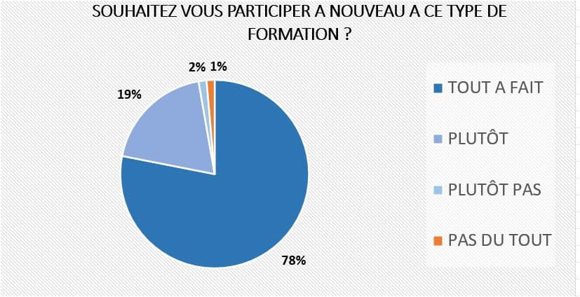 Ci-contre et ci-dessous le résultat des enquêtes de satisfaction concernant nos formations menées sur le premier semestre 2024.